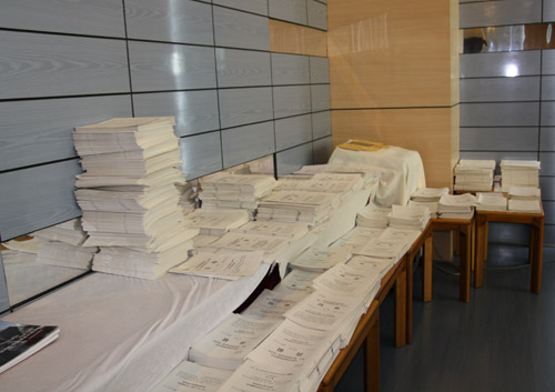 中国台湾网3月11日北京消息 全国政协十一届二次会议即将于明天闭幕,本网记者今天上午在本次政协会议设于北京铁道大厦的新闻中心里看到,一边是摆放整齐凝聚了委员们心血的会议简报,另一边是紧张忙碌着发稿的记者们。