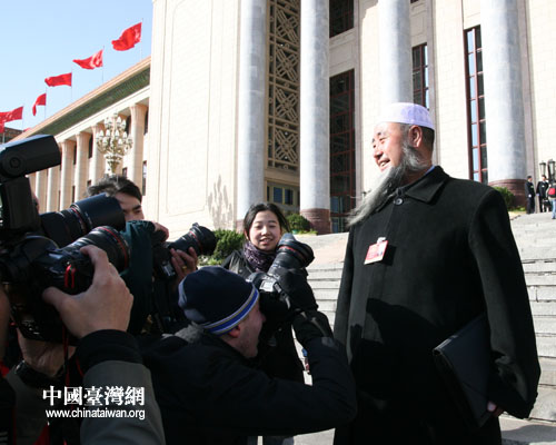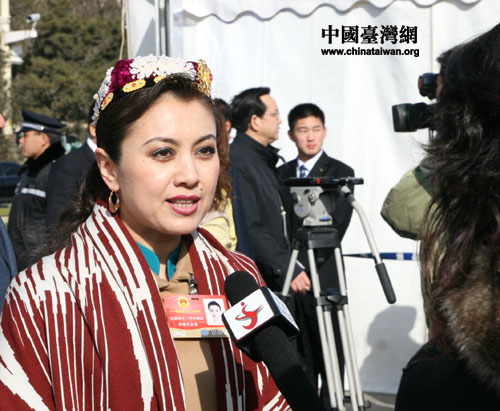 十一届全国人大二次会议13日闭幕,图为少数民族代表接受媒体采访。