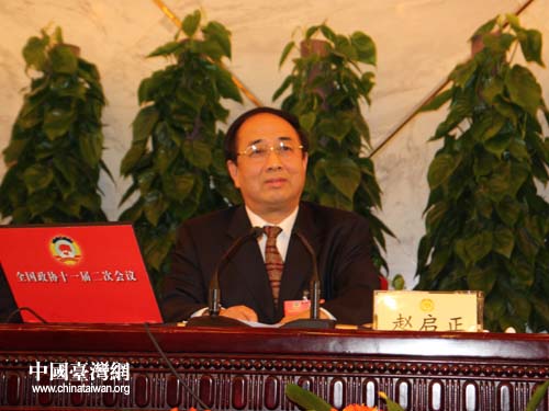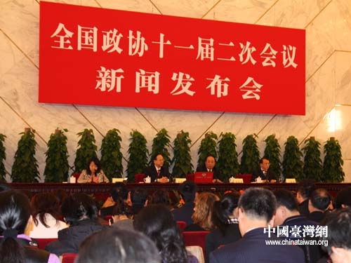 中国台湾网3月2日北京消息 今天下午,全国政协十一届二次会议在人民大会堂新闻发布厅举行了首场新闻发布会,大会发言人赵启正介绍会议情况,并回答记者提问。