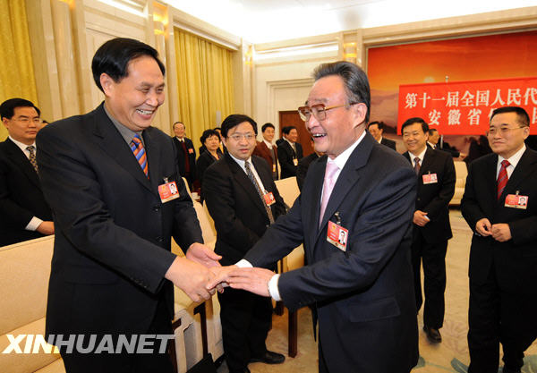 3月5日,中共中央政治局常委、全国人大常委会委员长吴邦国参加十一届全国人大二次会议安徽代表团的审议。新华社记者刘建生摄