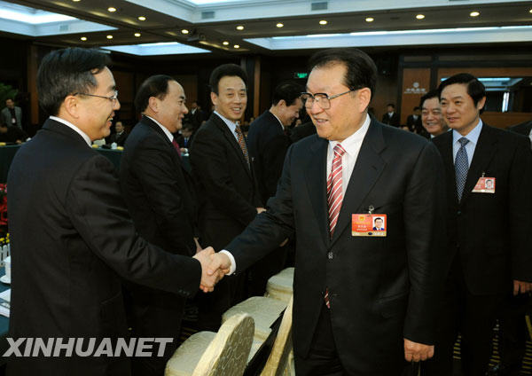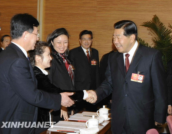 新华网北京3月5日电(记者 顾瑞珍)中共中央政治局常委、全国政协主席贾庆林5日下午来到他所在的十一届全国人大二次会议北京代表团,同代表们一起审议政府工作报告。