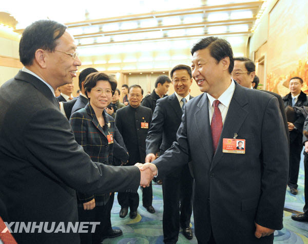 3月5日,中共中央政治局常委、国家副主席习近平参加十一届全国人大二次会议上海代表团的审议。新华社记者马占成摄