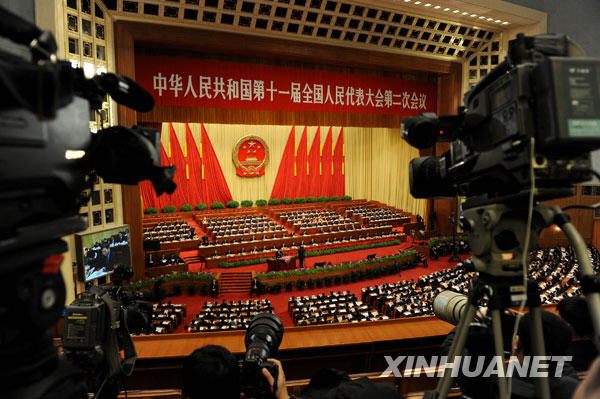 3月9日,十一届全国人大二次会议在北京人民大会堂举行第二次全体会议。新华社记者陈树根摄