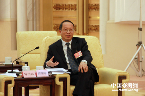 台湾省代表团人大代表陈耀中在全体会议上发言。