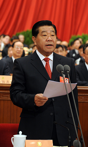 3月12日,中国人民政治协商会议第十一届全国委员会第二次会议在北京人民大会堂举行闭幕会。全国政协主席贾庆林主持闭幕会并讲话。新华社记者鞠鹏摄
