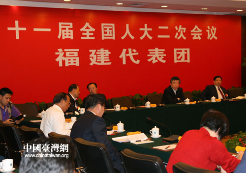 福建代表团热议海峡西岸经济区发展前景。(摄/张弛)