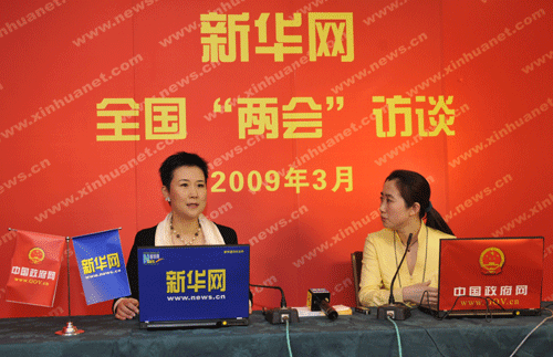 2009年3月3日,中国人民政治协商会议第十一届全国委员会第二次会议在北京人民大会堂开幕。图为全国政协委员李小琳在开幕前做客新华网、中国政府网设在大会堂的访谈直播间。陈涛 摄