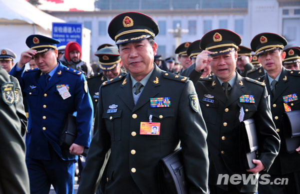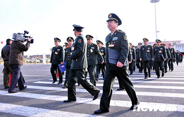 3月5日,十一届全国人大三次会议在京开幕,本网记者用镜头记录下两会军队代表的英姿。图为代表们步入会场。新华网 孙巍 摄