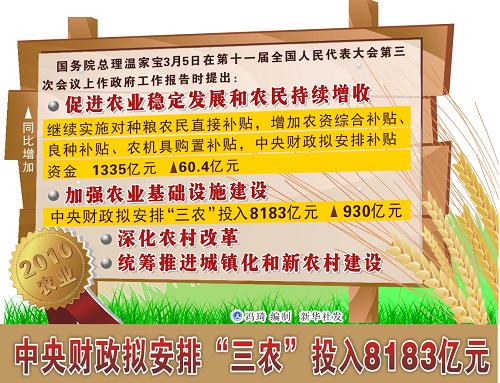 8183亿——中央财政拟安排“三农”投入8183亿元,比上年增加930亿元;