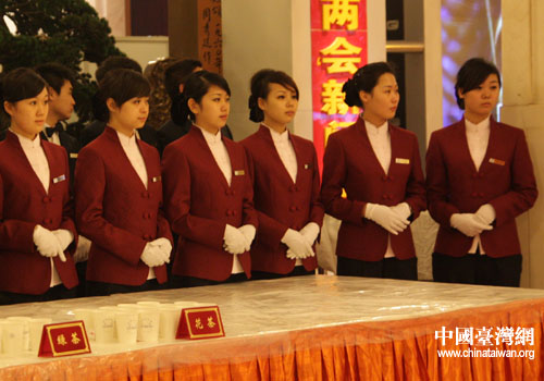 人民大会堂内茶歇处服务人员。(中国台湾网 高斯斯 摄)