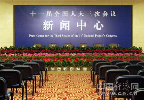 进入新闻中心,中国经济网记者注意到这里的各项设施都已准备就绪。二楼新闻发布厅里的境内、境外、港澳台媒体工作区已经布置完毕,宽带上网、电视信号、电话和传真等服务性设备一应俱全。新闻中心网络服务室也同时为记者开放,由包括中国经济网、人大网、人民网、新华网等在内的10家网络媒体直接提供相应设备,并都派出了专业的技术人员,24小时为国内外记者提供专业化的网络服务。