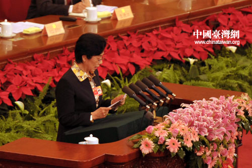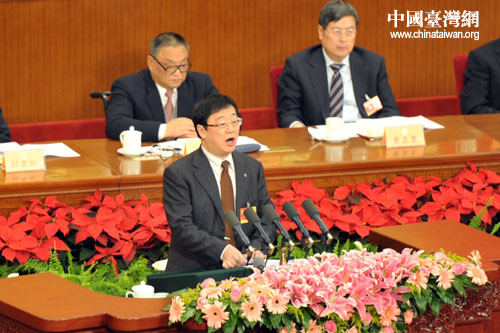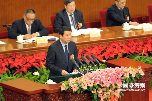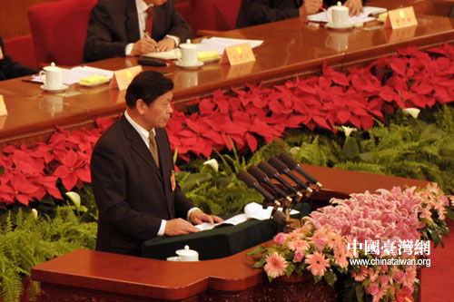 宋晓梧委员在大会上作《调整收入分配结构,加快经济发展方式转变》的发言。 (中国台湾网发 肖春阳、刘洋摄)