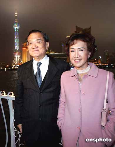 连战夫妇夜游黄浦江。作者:毛建军 中新社上海五月一日电(记者许晓青刘舒凌)“十里洋场今胜昔,梦回江湾两岸情!”中国国民党主席连战今晚在上海黄浦江畔的发出如是感慨。晚宴之后,连战一行旋即登上黄浦江上最著名的游船——风采号,开始了他的沪上“寻梦”之旅。