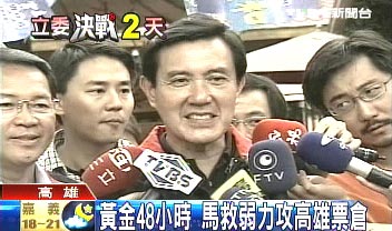 中国台湾网1月10日消息 据台湾TVBS电视台报道,台湾地区“立委”选战进入最后阶段,马英九倒数48小时锁定绿营大票仓高雄,力稳一级战区的选情;为防意外,马英九下令幕僚,对呛声者拍照搜证,以免发生情况时可以比对,是不是对手阵营派出的职业呛马人士。
