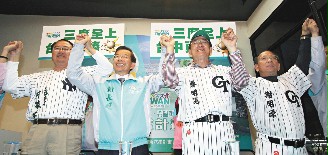 绿营昨天在中台湾的助选阵容以民进党2008正副参选人谢长廷、苏贞昌双挂帅,民进党前主席游锡堃与政治学者李鸿禧等人也到场助阵。
