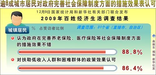 图表:逾8成城市居民对政府完善社会保障制度方面的措施效果表认可 新华社发