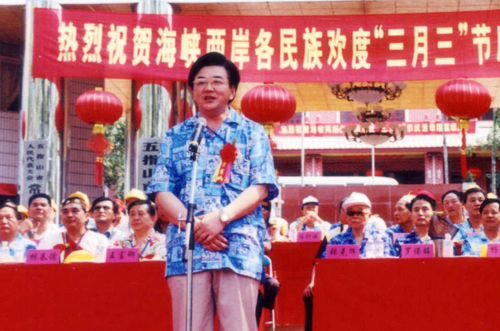2005年3月,徐刚主任在海峡两岸各民族欢度“三月三”节庆活动上致辞。(资料照片)