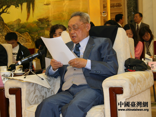 台湾光复亲历者老台胞黄幸先生在座谈会上发言(摄影 赵颖芳)
