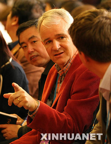 10月22日,十七届中央政治局常委在北京人民大会堂与中外记者见面。身穿红色衣服的记者成为记者席中的亮点。 新华社记者 邢广利摄