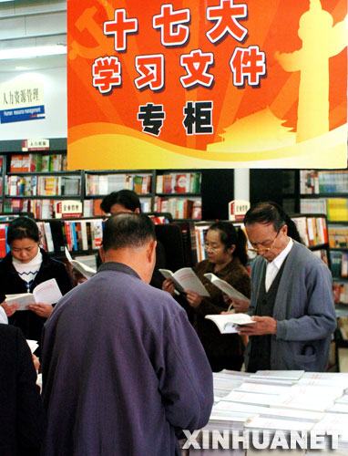 资料图片:10月29日,昆明市民在昆明书城挑选十七大报告单行本。当日,10万册十七大报告单行本正式在昆明市发行,当地群众踊跃购买。 新华社记者 邹峥摄