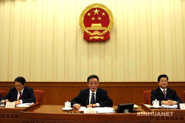 10月28日,十届全国人大常委会第三十次会议完成各项议程后在北京人民大会堂闭会。吴邦国委员长主持会议。 新华社记者 李涛摄