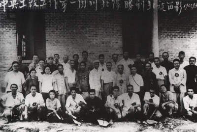 各民主党派一致拥护土地改革法,积极参加全国政协组织的土改工作团。民盟中央常委胡愈之任中央土改工作团副团长,率领第一团赴川参加土改工作。图为1951年9月,在四川南充与中共川北区党委第一书记、川北行署主任胡耀邦(二排右起第五人)等合影。二排右起第六人为胡愈之。