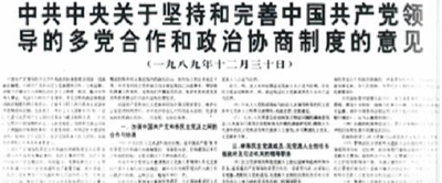 1989年12月30日,中共中央制定《中共中央关于坚持和完善中国共产党领导的多党合作和政治协商制度的意见》,使这一制度进一步规范化、制度化。