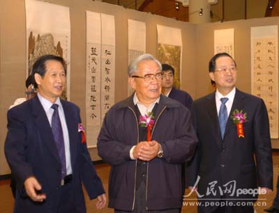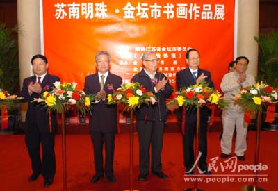 人民网北京9月26日讯 记者杨文全报道:由金坛市政协和人民政协报联合举办的“苏南明珠一一金坛市书画作品展”9月26日在全国政协礼堂举办。全国政协副主席张怀西,原中央军委副主席、国防部长迟浩田等为书画展剪彩。原中共中央政治局常委、国务院副总理李岚清和迟浩田为画展题词。