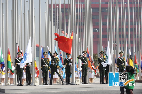 2010年4月30日上午8:30分,在上海世博园中国馆附近的“旗林广场”上举行了“旗林”升旗仪式。