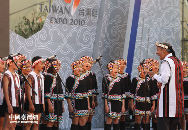 台湾少数民族小朋友组成的“原声童声合唱团”点灯祈福仪式上表演。(中国台湾网 钟宝华 摄)
