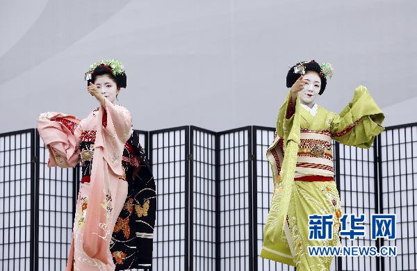 6月17日,两名来自日本京都的艺伎在世博园亚洲广场表演。据了解,世博园日本馆将于7月举行“游日本”系列活动(Visit Japan Festival)。届时,游客不仅能在日本馆内体验亲临日本的感觉,还可与日本艺伎近距离接触,交流合影。 新华社记者沈伯韩摄