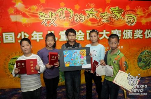 9月27日,“我们的太空家园”全国少年儿童绘画大赛颁奖仪式9月27日上午在上海世博会太空家园馆举行,为期两个多月的活动圆满落幕。大赛共评选出62个优秀作品奖和5个特等奖,特等奖作品将在中华航天博物馆内收藏。