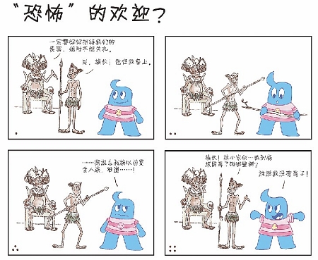 今天,世博日报独家刊登与动画片《海宝来了》同名的四格漫画。