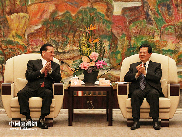 4月29日下午,中共中央总书记胡锦涛在上海会见了中国国民党荣誉主席连战、吴伯雄和亲民党主席宋楚瑜等应邀出席上海世博会开幕式的台湾各界人士。(中国台湾网 钟宝华 摄)