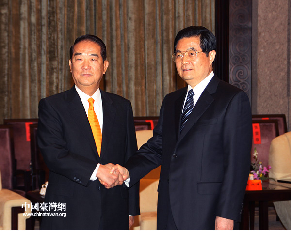 胡锦涛总书记同亲民党主席宋楚瑜握手。(中国台湾网 钟宝华 摄)