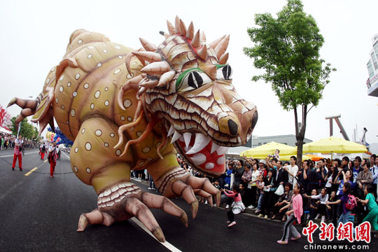 5月22日,上海世博会波兰国家馆日的活动中,一场“波兰龙的巡游”,成为世博园最新亮点。波兰和中国一样,对龙有着特殊的崇拜。中新社发 杜洋 摄