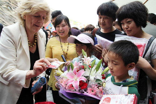 西班牙国家馆总代表玛丽亚蒂娜,在国家馆的入口处迎接这家庭,那时他们已在西班牙国家馆门外排队两个小时。曼莎和弟弟、父母、祖父母以叔叔一家,早上六时起床,乘两个小时车到上海参观世博会。