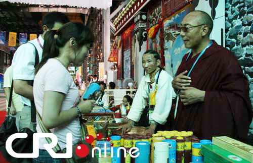 国际在线消息(记者 德庆白珍、罗布次仁):从9月1日西藏活动周在世博园区宝钢大舞台启动至今,以非物质文化展示为龙头的西藏传统精品文化展示和多彩多姿的歌舞表演,吸引了越来越多的国内外游客前来参观。