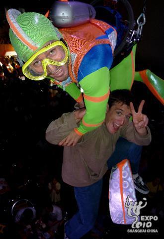 世博网9月4日消息:澳大利亚国家馆世界一流的驻馆高空杂技团今天庆祝了其第五百次“空中飞人”演出,该演出是特为上海世博会而创作的。