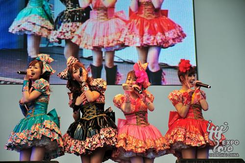 世博网10月29日消息:28日下午, 日本产业馆的JAL舞台迎来了“Ex-Ceed”乐队。该乐队是由4名早安少女组成员——久住小春、夏雅烧、纯纯和琳琳组成,其乐队名是特别为来上海世博会演出所征集的。这是该组合自今年六月首次在日本产业馆JAL舞台上演出之后,第二次在世博会进行演出。演出中,“Ex-Ceed”乐队演唱了数首耳熟能详的歌曲。最后,用中文演唱了经典老歌《茉莉花》,把演出推向了高潮,博得了台下阵阵喝彩。 (作者:邹曈 摄影:邹曈)