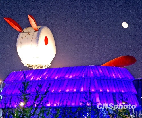 上海世博会世博园内,澳门馆夜景--玉兔望月。 中新社发 刘春明 摄