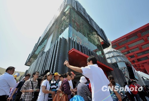5月1日,上海世博会开园迎客,香港馆前排起人龙。 中新社发 贾国荣 摄