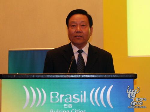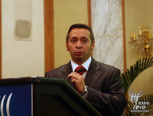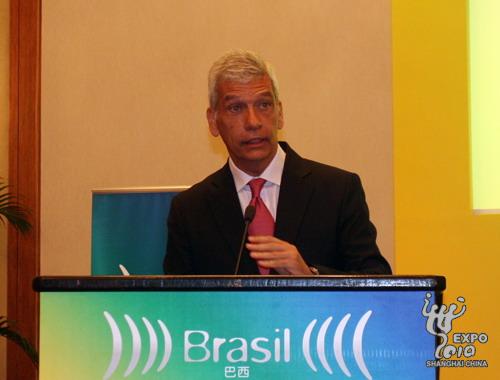 巴西贸易与投资促进局主席、世界投资促进机构协会主席兼上海世博会巴西馆总代表亚历山德罗?特谢拉介绍展馆情况
