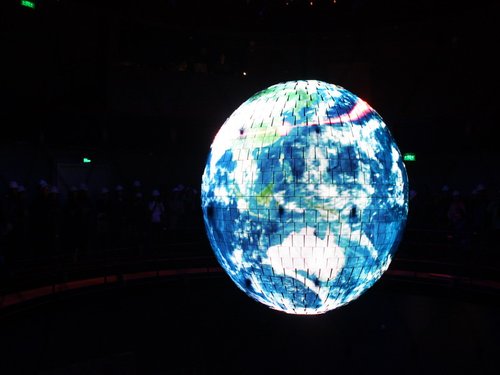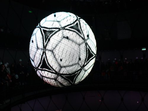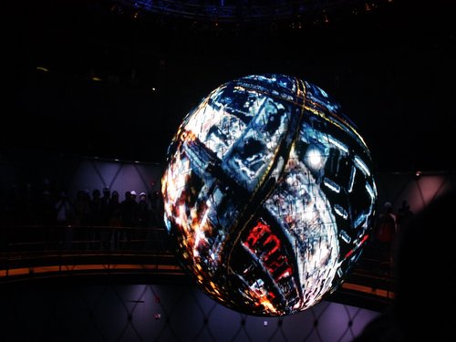 在德国馆内,参观者如同置身于于一个真实的城市一般,经过起落有致的坡形景区,穿过隧道,途经规划师、花园、工厂和城市广场,最终到达和谐之旅的终点——城市能源中心。座位文化大使的虚拟讲解员严思和燕燕将自始至终陪同参观,并在动力之源大厅活灵活现地出现在大家面前,鼓舞在场的600名观众将一个装有40万根发光二级管的金属球体通过共同的呼喊声推动起来。在这7分钟的时间里,球体将发出巨大的动力。同时球体表面展现的图像世界还营造了一幅城市愿景,在这里,保护与创新同等重要。
