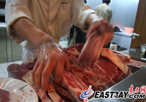 学完了探戈,肚子如果饿了,游客可以在馆内的阿根廷餐厅尝尝地道的阿根廷烤肉和红酒,人均消费大约在350元人民币。店员介绍,牛肉都是从阿根廷空运过来的,十分地道。