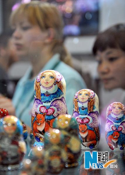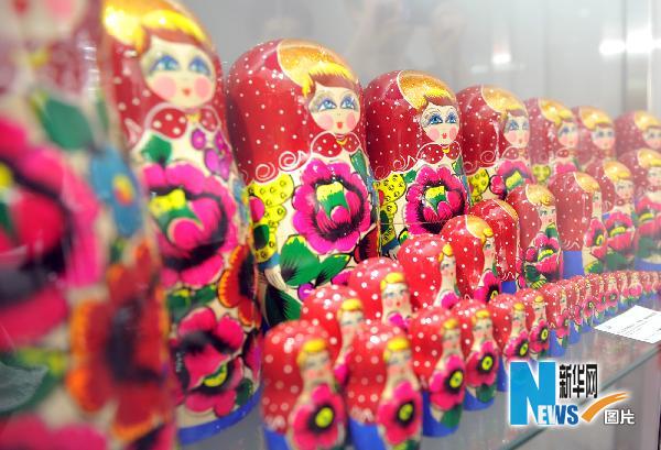 5月2日,俄罗斯传统工艺品套娃受到游客的追捧。新华社记者王定昶摄