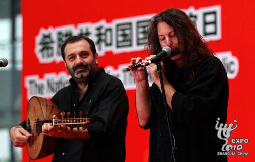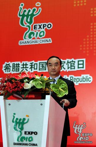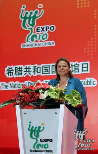希腊国家馆日官方仪式19日上午在世博中心隆重举行。希腊经济、竞争力与海运部部长卢卡·卡策莉(Loukia Katseli),中国交通运输部副部长翁孟勇出席仪式并致辞。上海世博会中国政府副总代表赵亚力出席仪式。