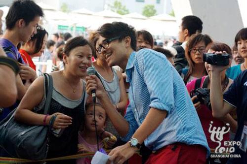 瑞典馆“情歌王子”艾保罗与现场观众互动