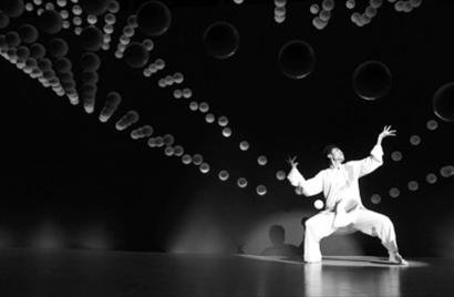 因此,尽管太极舞只有1分34秒,但舞者面临的挑战却超乎想像。边疆说,站在这个台上,人就会不由自主地向前倾,“要做出各种翻滚、空翻的动作,必须随时随地寻找重心保持平衡”。从“斜坡”的高处向低处空翻,一不小心就会跌倒受伤。女舞者王晓婷说:“许多女演员摔得浑身是伤。”