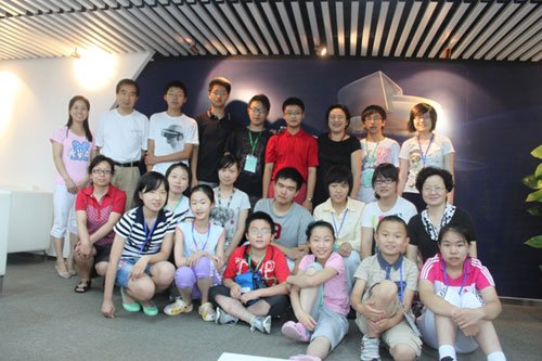 汽车馆(网上汽车馆)副馆长刘奇女士(后排右三)与申博男孩张骋昊(后排右四),以及参加活动的徐汇区青少年合影留念